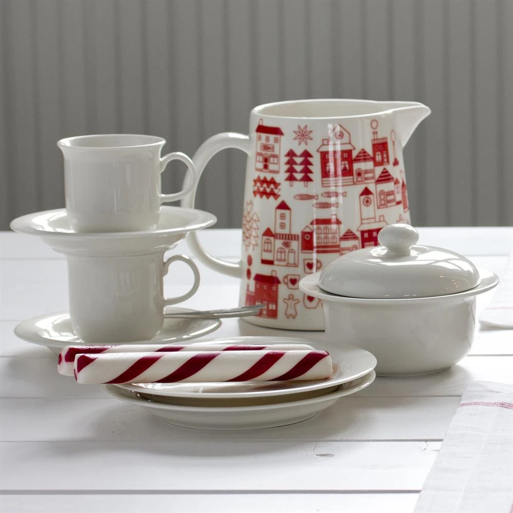 De stijlvolle suikerpot met deksel van Arabia maakt deel uit van de porselein serie Arctica en heeft een schitterende wit design.