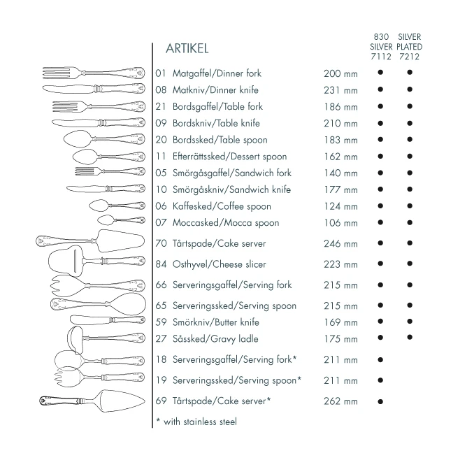 - OnderhoudsinstructiesBewaar zilverwerk niet samen met roestvrijstalen bestek.